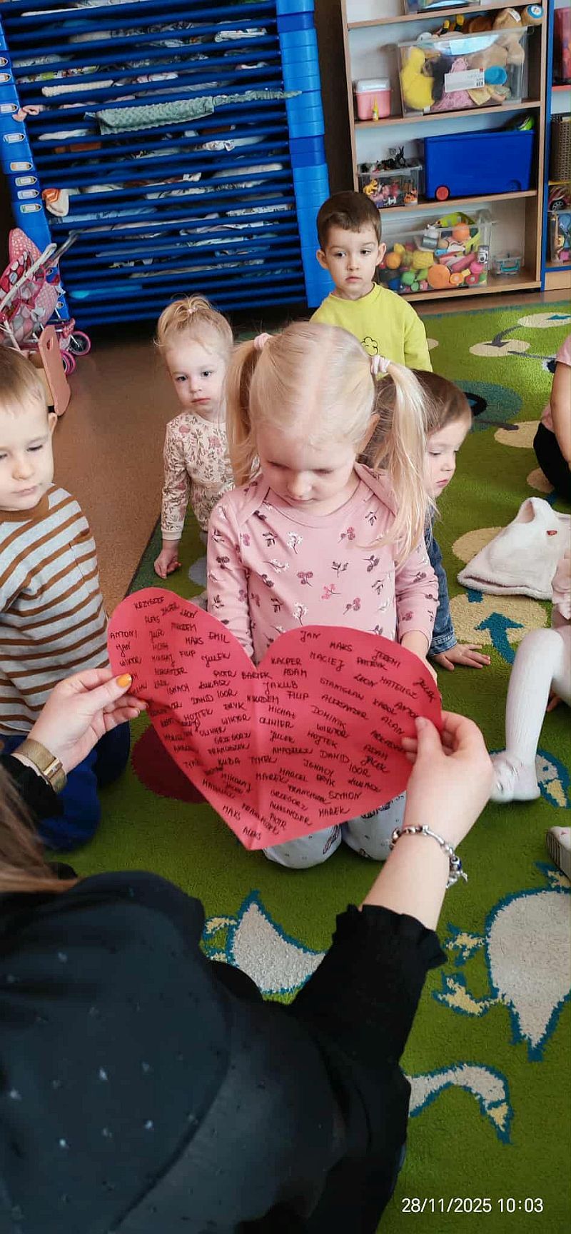 Andrzejki w grupie Sówki były pełne magii, radości i dziecięcych uśmiechów. Najpierw każde dziecko losowało dla siebie wróżbę – przepowiednię. Maluchy z ciekawością odkrywały, co czeka je w najbliższej przyszłości. Później przyszedł czas na andrzejkowe memory. Dzieci z zaangażowaniem wyszukiwały pasujące pary obrazków. Nie mogło zabraknąć najbardziej znanej wróżby – przekuwania serduszka. Zabawa wywołała wiele śmiechu i zaskoczonych min wśród dzieci. Na zakończenie czekała wyjątkowa atrakcja – zabawa z latarką, podczas której dzieci odkrywały jaki zawód będą wykonywać w przyszłości.