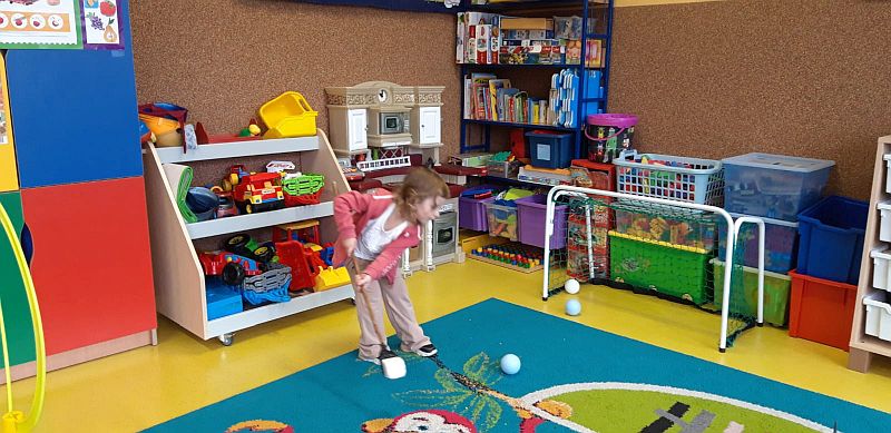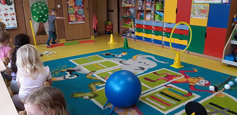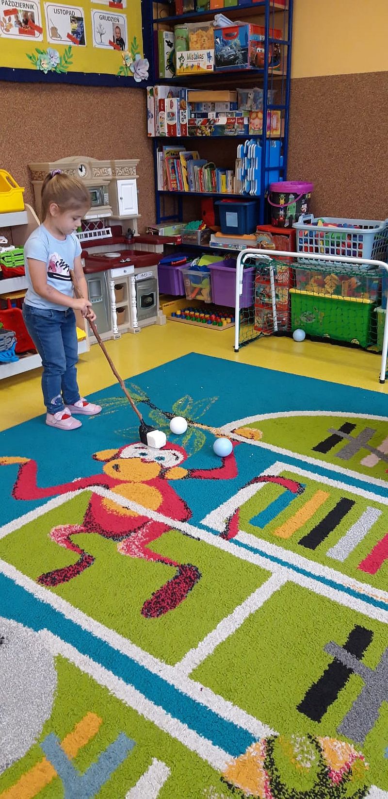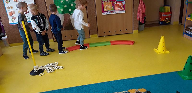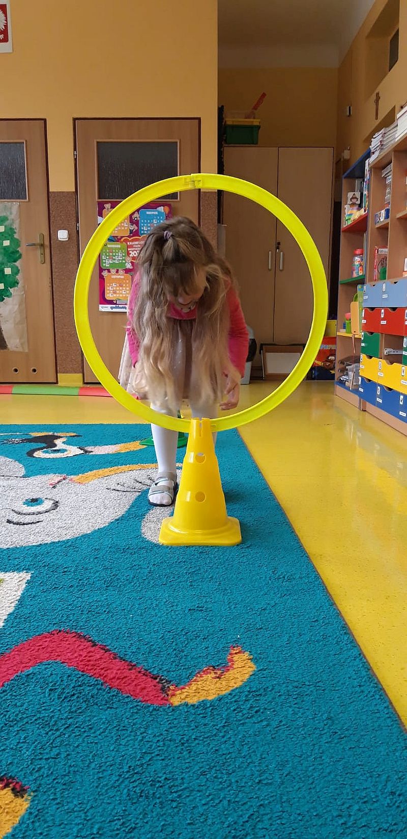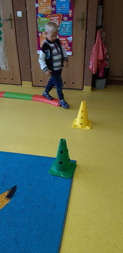 Był tor przeszkód: przechodzenie przez kładkę, slalom, przejście przez hula hop, celowanie do bramki,