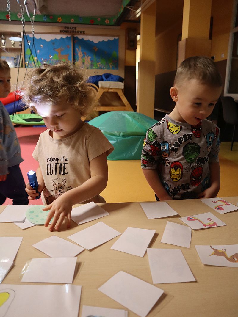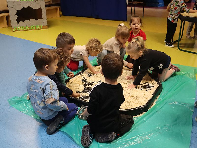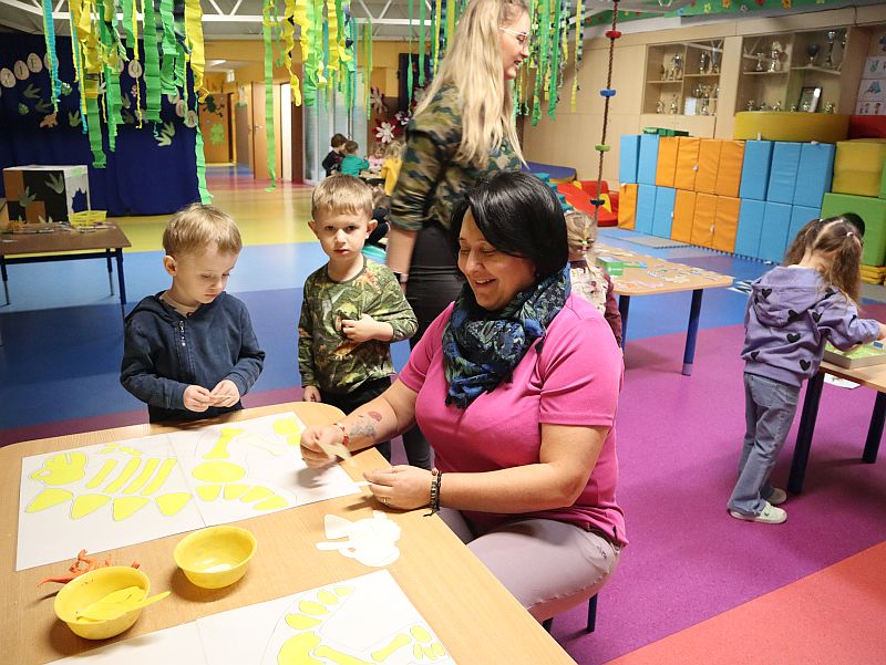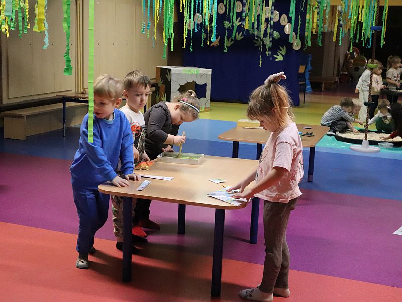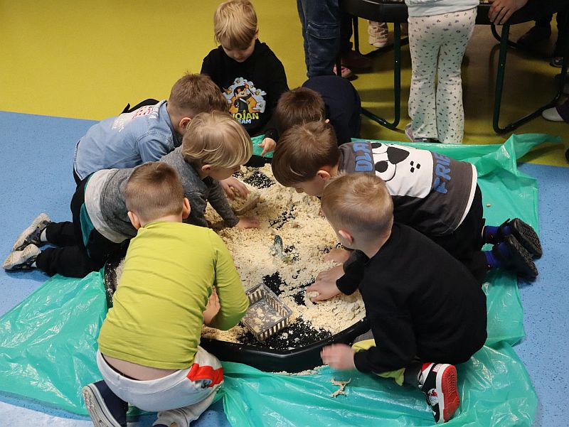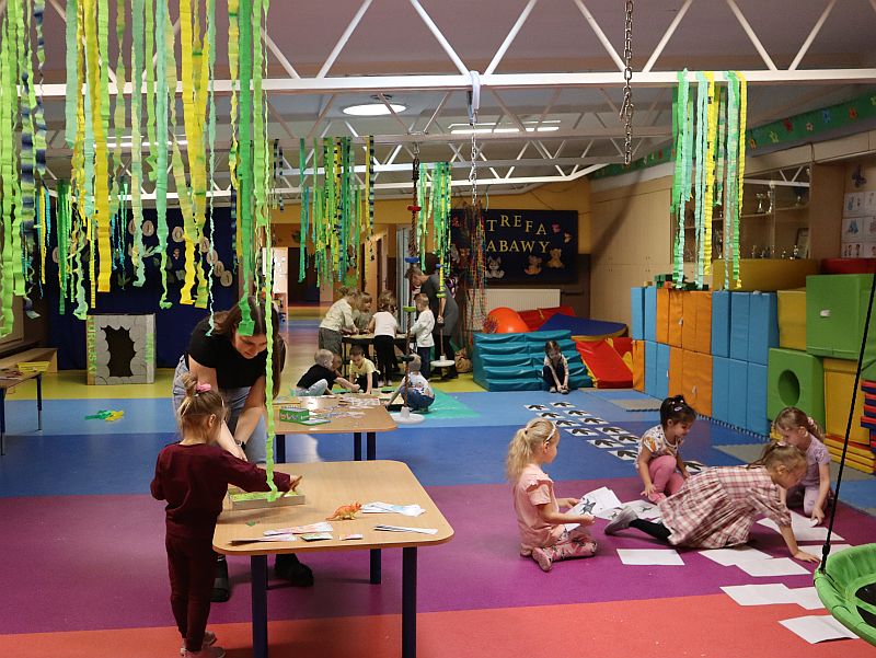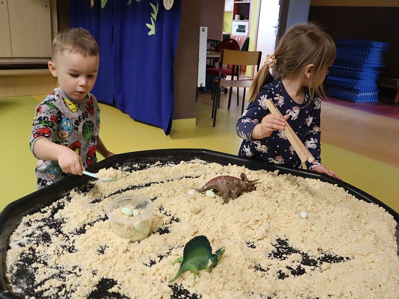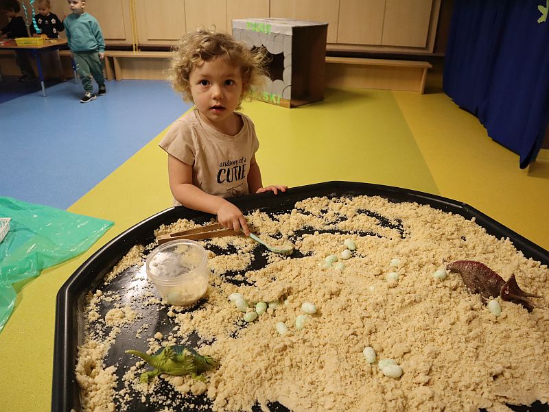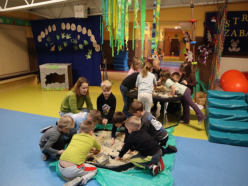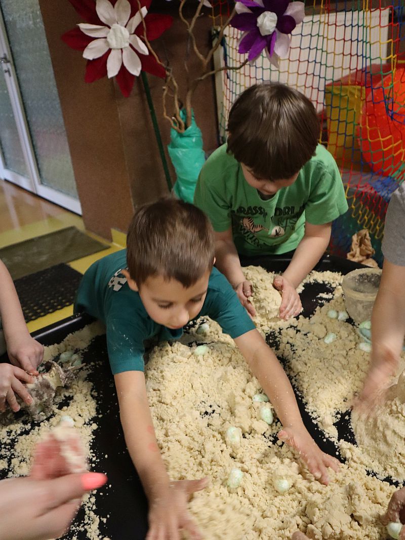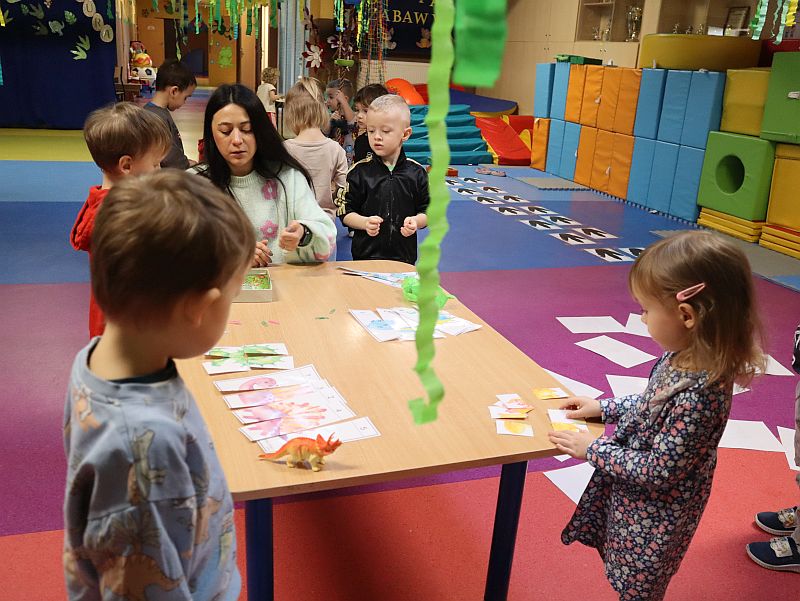 Dzień Dinozaura w przedszkolu był pełen radości i ciekawych aktywności. Dzieci brały udział w różnych zabawach związanych z dinozaurami. Układały puzzle, grały w grę Memory, a także uczestniczyły w „wykopaliskach”, podczas których odkrywały ukryte skamieniałości. Dużo radości sprawiła również fotobudka, w której mogły zrobić pamiątkowe zdjęcia w dinozaurowym klimacie. To był dzień pełen uśmiechu, zabawy i nowych odkryć.