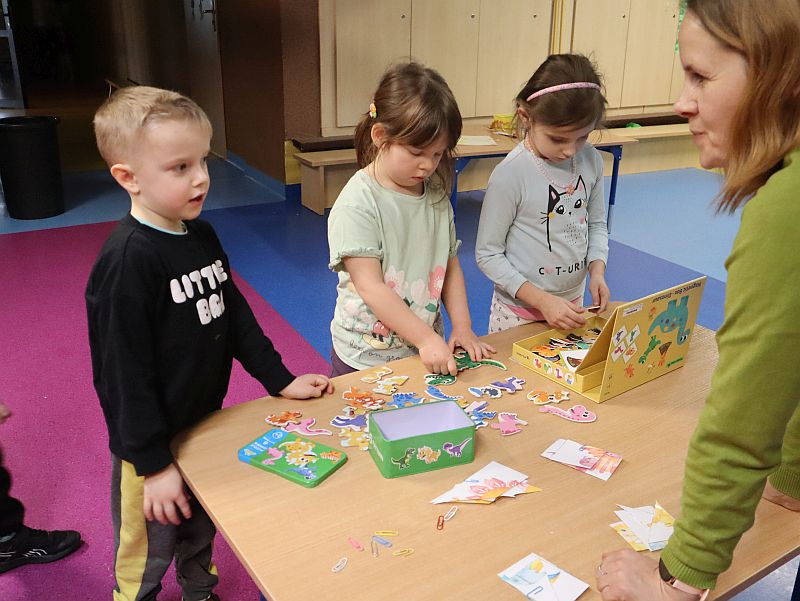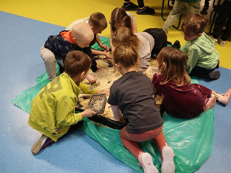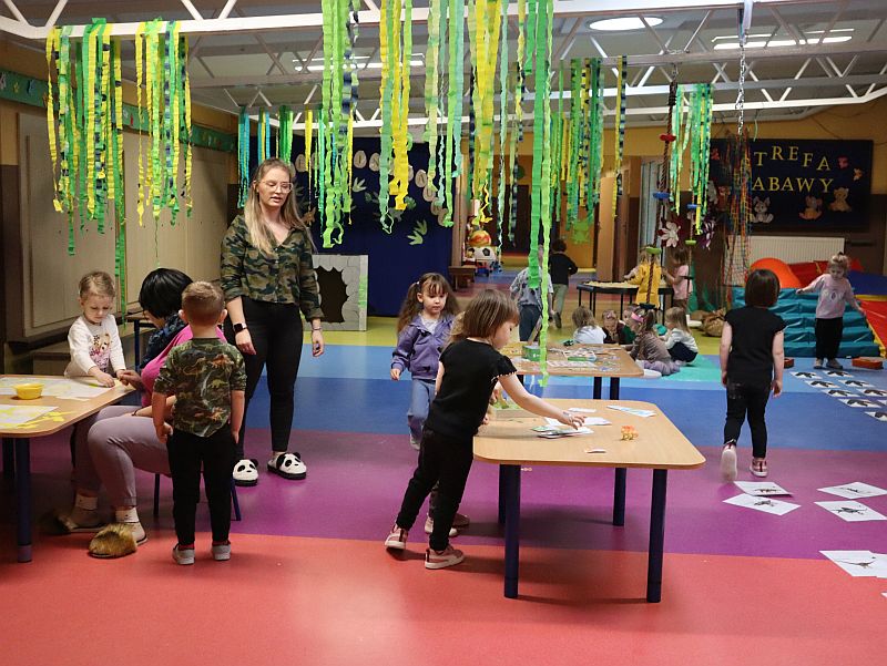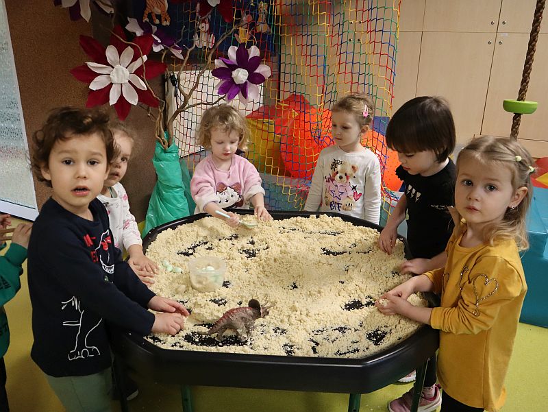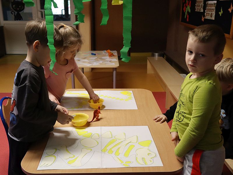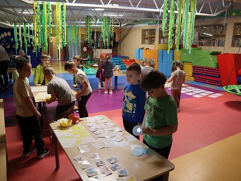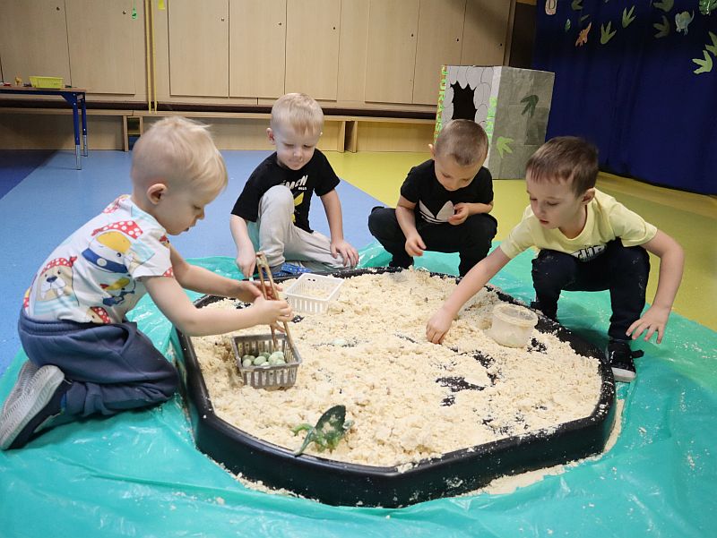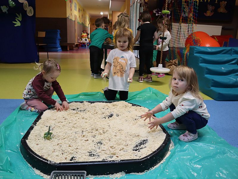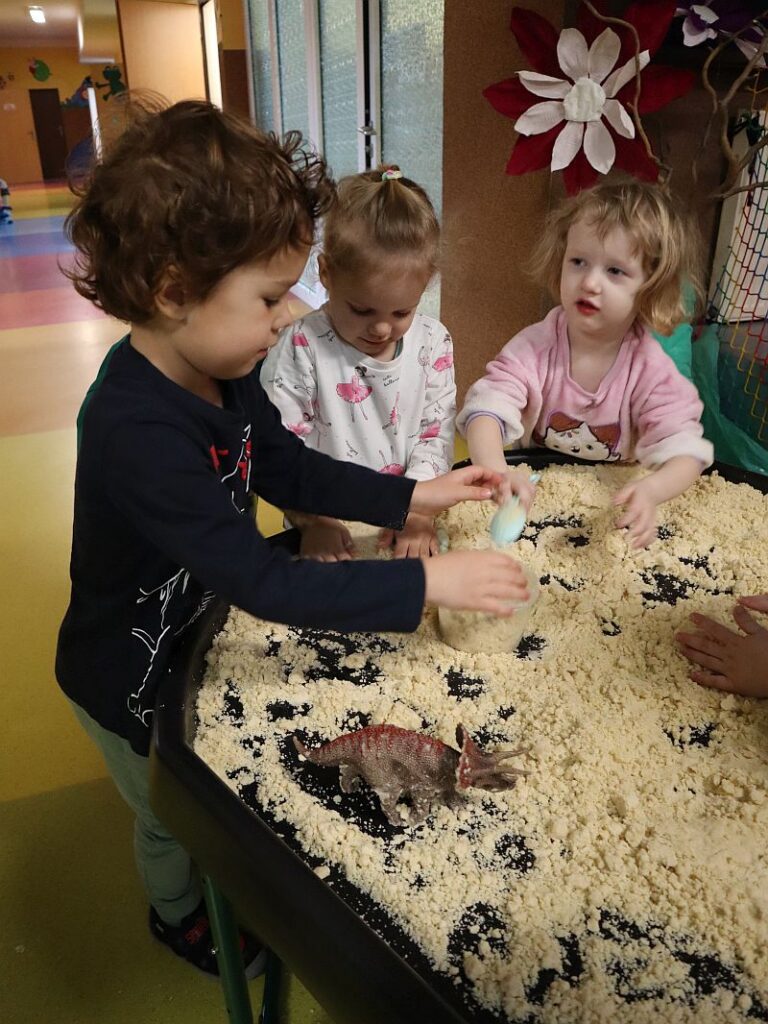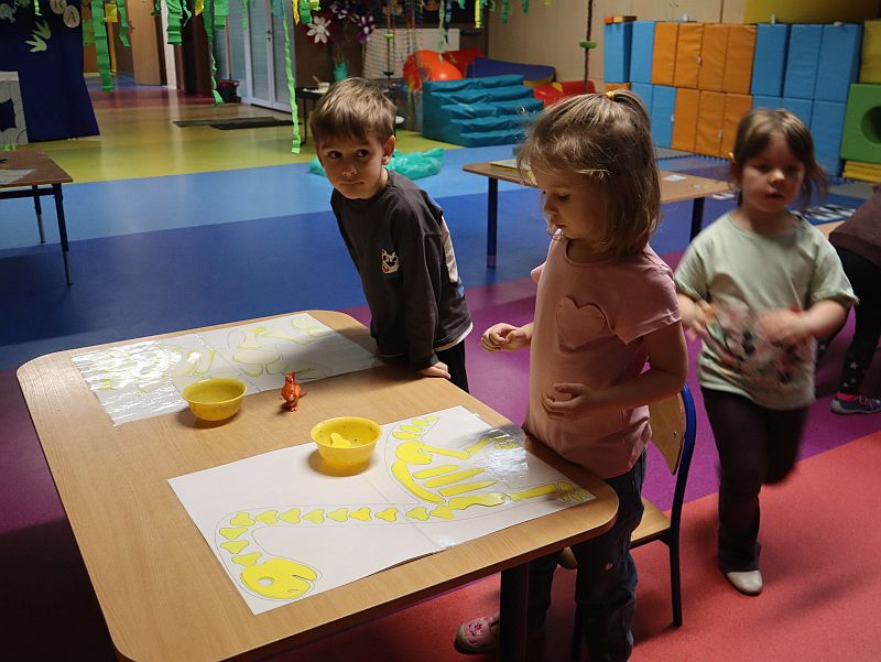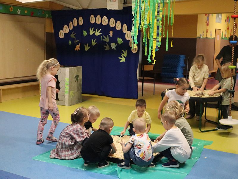 Dzień Dinozaura w przedszkolu był pełen radości i ciekawych aktywności. Dzieci brały udział w różnych zabawach związanych z dinozaurami. Układały puzzle, grały w grę Memory, a także uczestniczyły w „wykopaliskach”, podczas których odkrywały ukryte skamieniałości. Dużo radości sprawiła również fotobudka, w której mogły zrobić pamiątkowe zdjęcia w dinozaurowym klimacie. To był dzień pełen uśmiechu, zabawy i nowych odkryć.