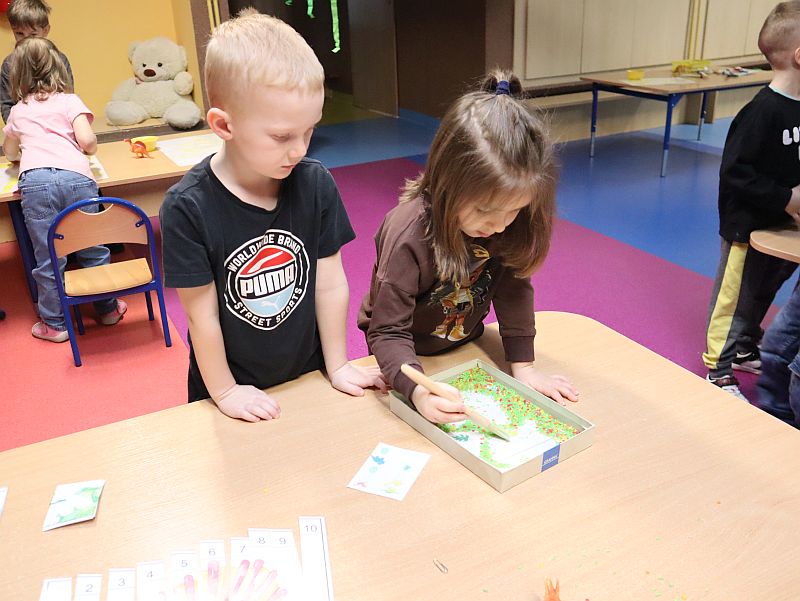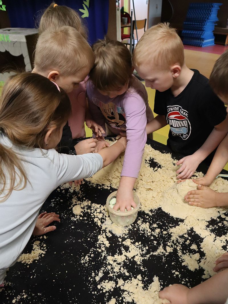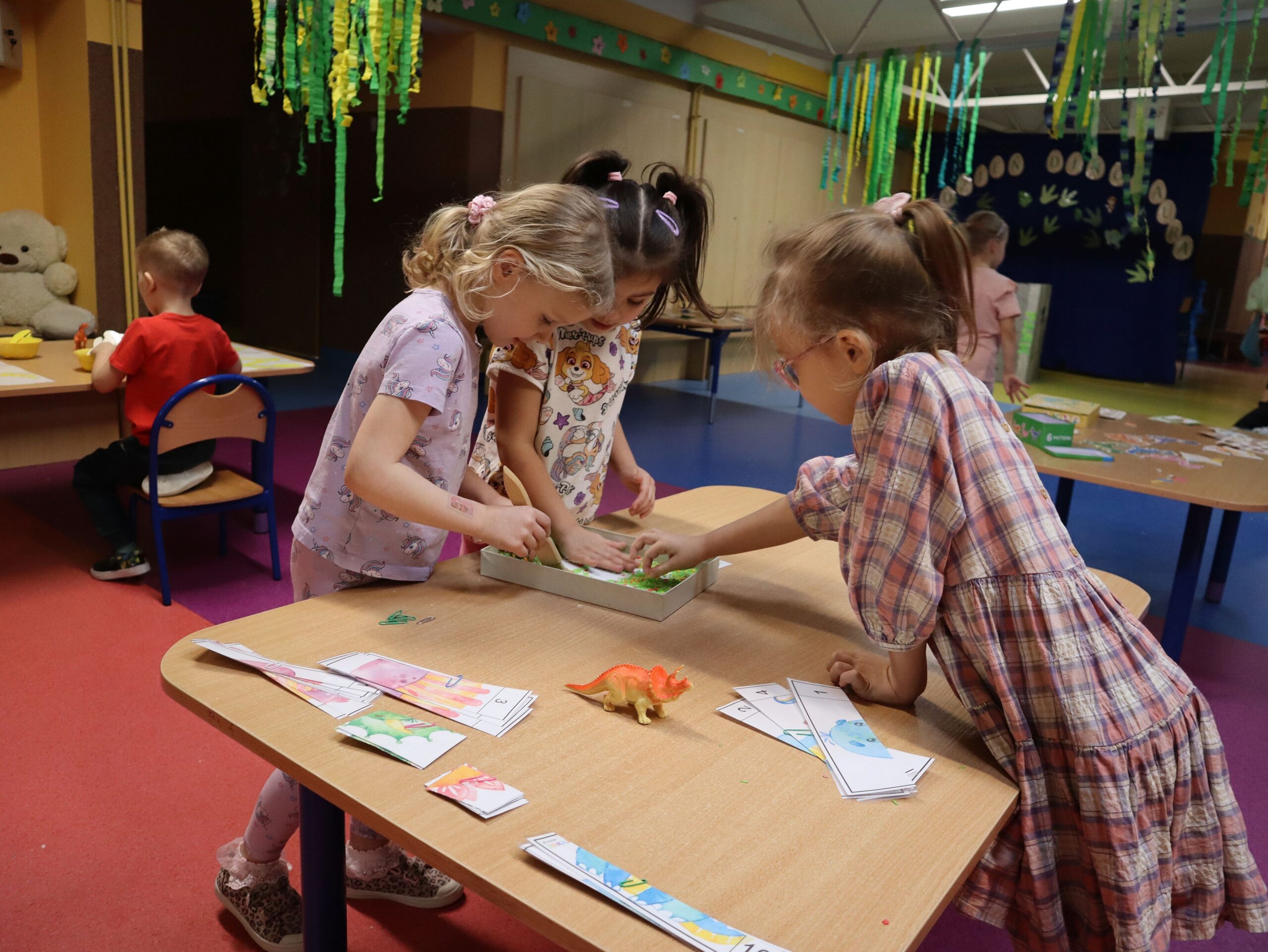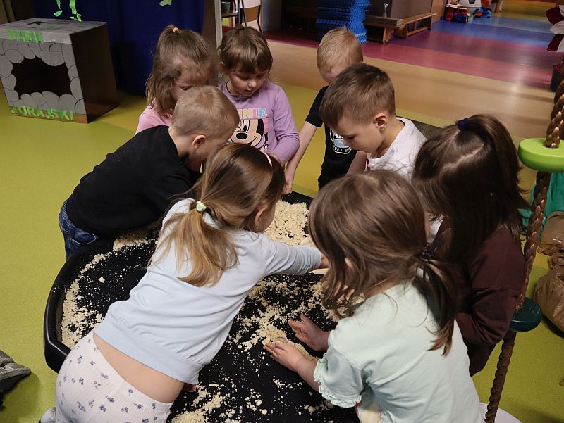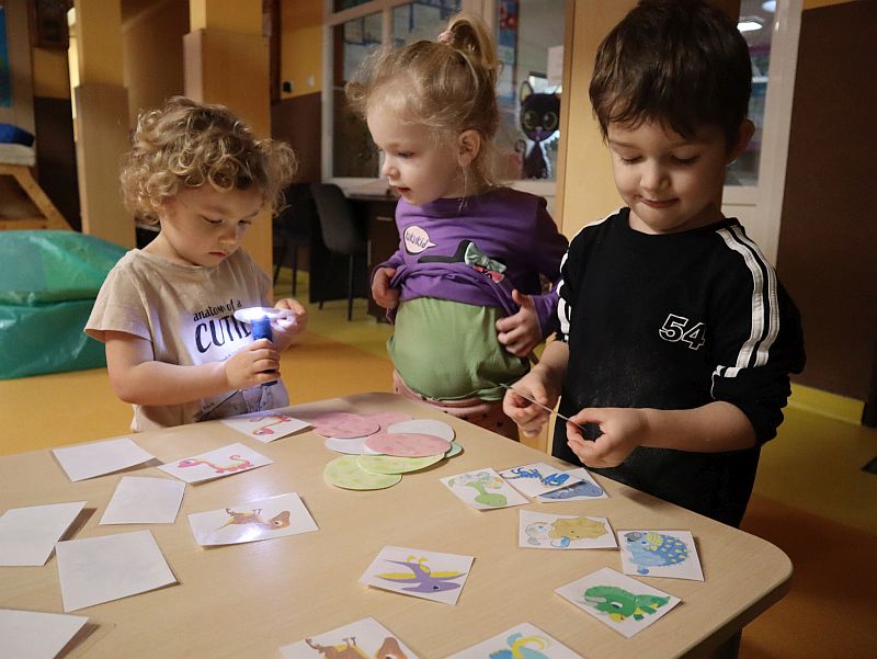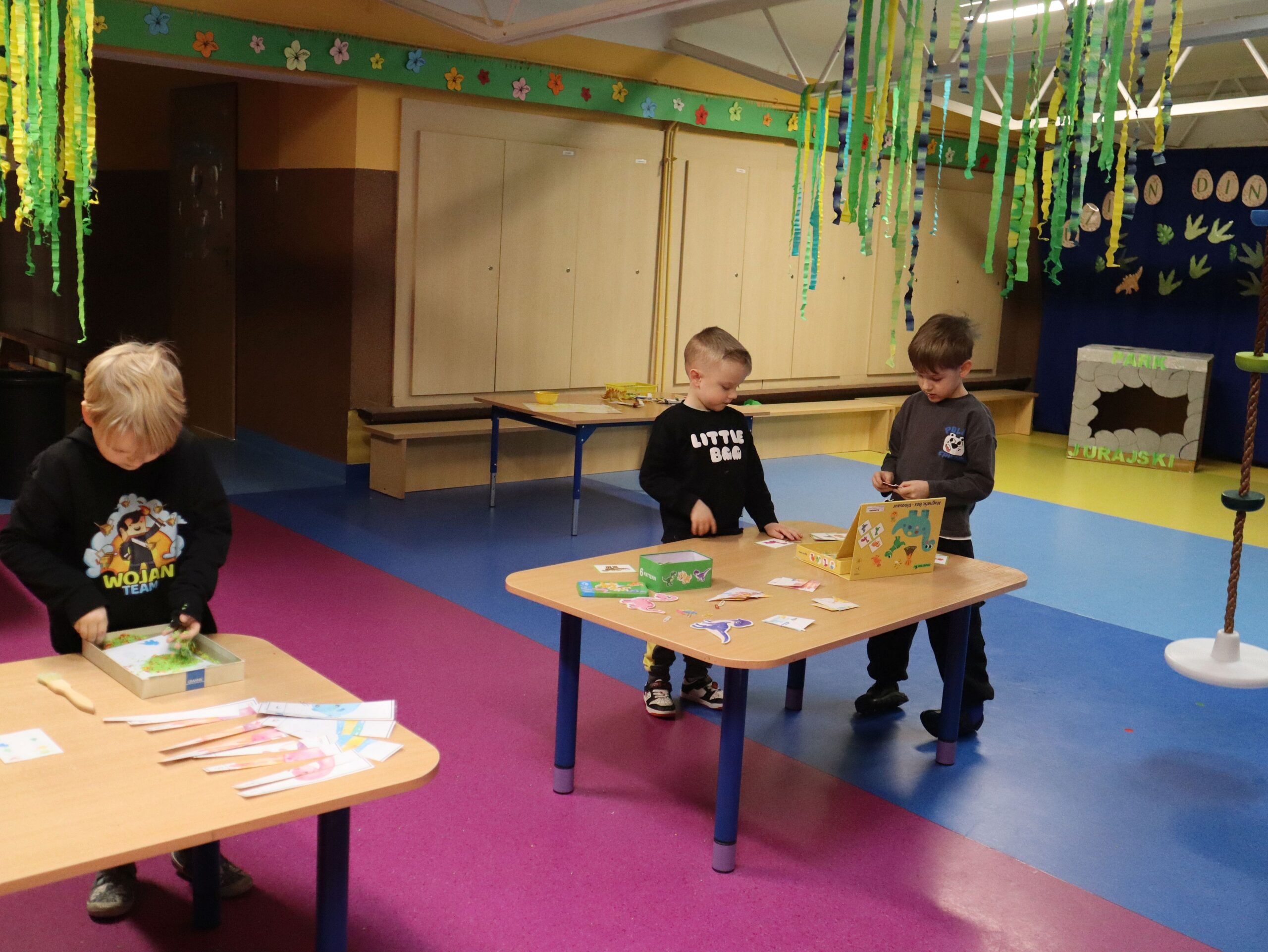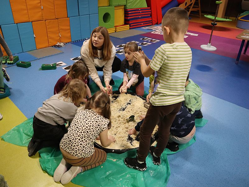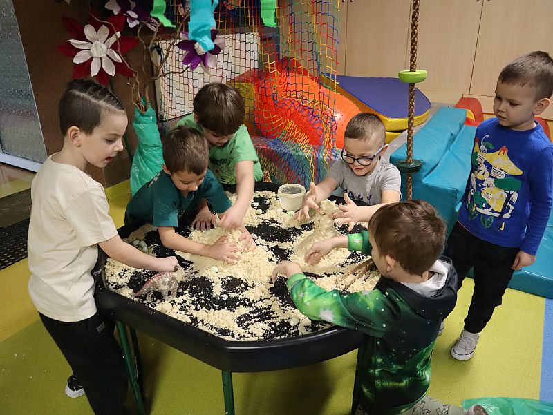 Dzień Dinozaura w przedszkolu był pełen radości i ciekawych aktywności. Dzieci brały udział w różnych zabawach związanych z dinozaurami. Układały puzzle, grały w grę Memory, a także uczestniczyły w „wykopaliskach”, podczas których odkrywały ukryte skamieniałości. Dużo radości sprawiła również fotobudka, w której mogły zrobić pamiątkowe zdjęcia w dinozaurowym klimacie. To był dzień pełen uśmiechu, zabawy i nowych odkryć.
