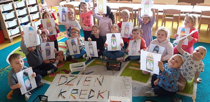 To nietypowe święto przypada 22 listopada. „Kolorowe kredki w pudełeczku noszę, kolorowe kredki bardzo lubią mnie…” – wszyscy znamy kredkową piosenkę Fasolek i nawet mimo upływu lat stanowiła świetne rozpoczęcie obchodów tego święta. W rytmach tego dziecięcego przeboju oraz piosenki „Kiedy kredki się poznały” dzieci wykonały pracę plastyczną „Mój ulubiony kolor kredki i ozdobiły ją w środku swoją podobizną a także za pomocą kredek ułożyły napis DZIEŃ KREDKI.Była to również wspaniała zabawa matematyczna, porównywanie i dopasowywanie długości kredek.