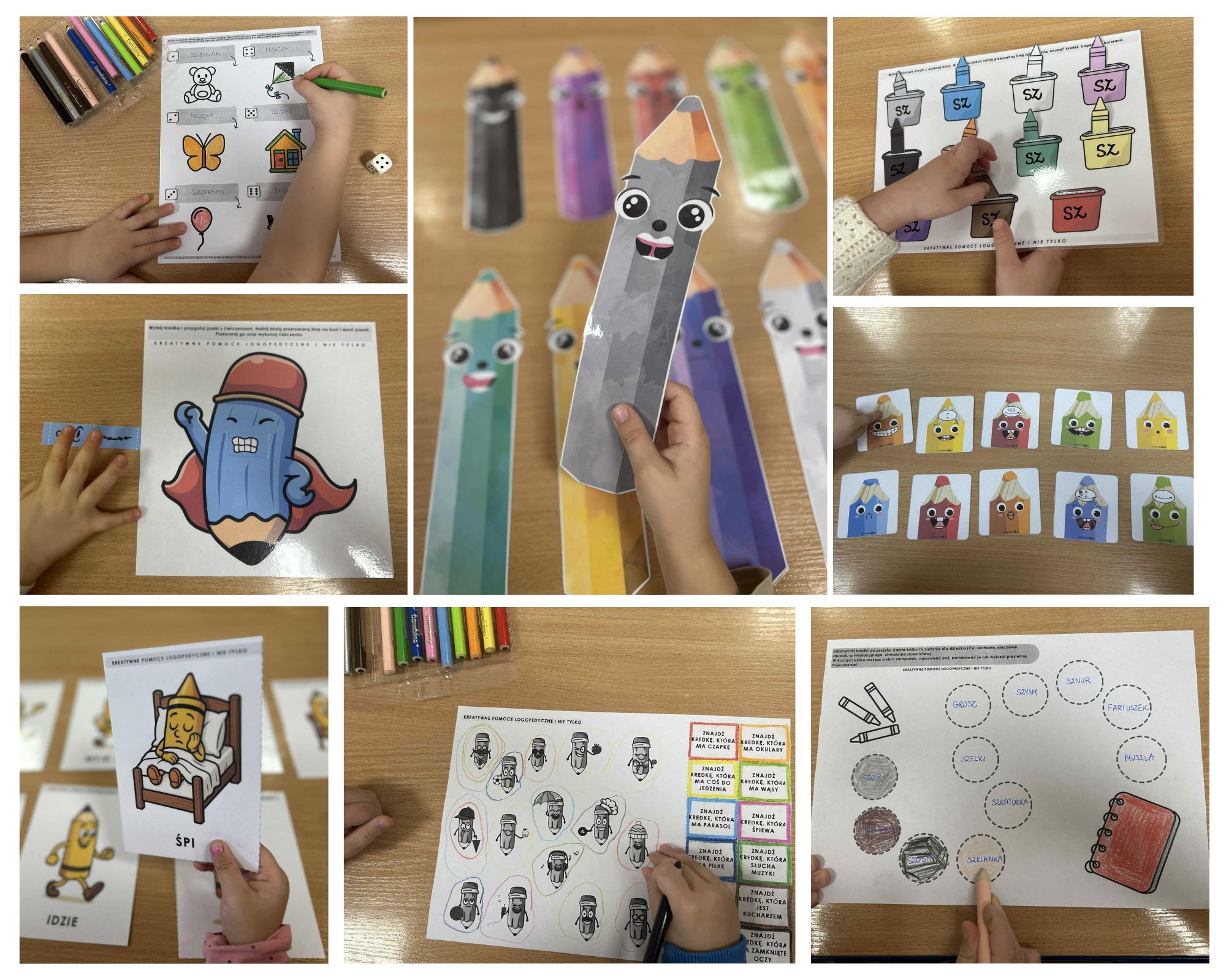 W tamtym tygodniu z okazji Dnia Kredki nasze zajęcia logopedyczne zamieniły się w kolorową zabawę. Pracowaliśmy zarówno nad aparatem artykulacyjnym, jak i nad rozumieniem, słownictwem oraz głoskami – oczywiście w towarzystwie wesołych kredek.