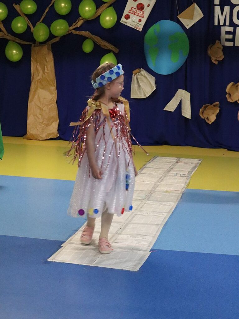 W naszym przedszkolu odbył się wyjątkowy, pełen kreatywności Ekologiczny Pokaz Mody! Dzieci wraz z rodzicami przygotowały niezwykłe stroje wykonane z materiałów przeznaczonych do recyklingu – papieru, folii, kartonów, butelek plastikowych czy starych tkanin.