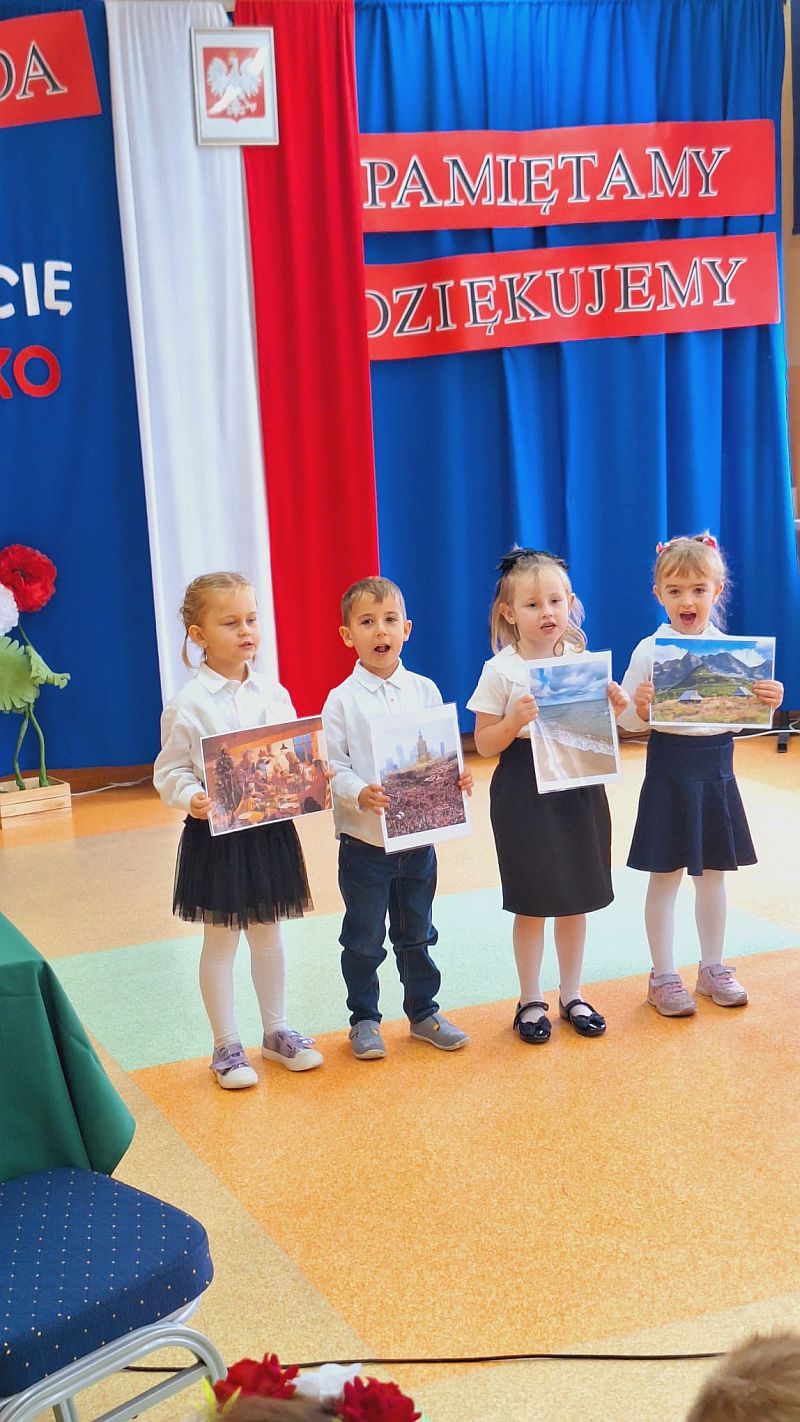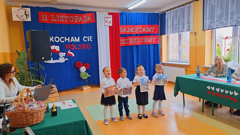 14 listopada 2025 r. w  Szkole Podstawowej w Domaniewicach odbył się  Międzyszkolny konkursu piosenki i pieśni patriotycznej „KOCHAM CIĘ POLSKO”  – w tym wyjątkowym dniu nasze przedszkole reprezentował zespół z grupy Misie z piosenką „Polska to mój kraj”, za której wykonanie otrzymał wyróżnienie 🙂
