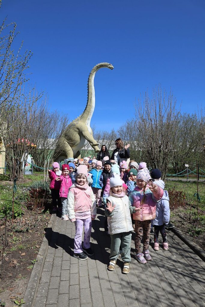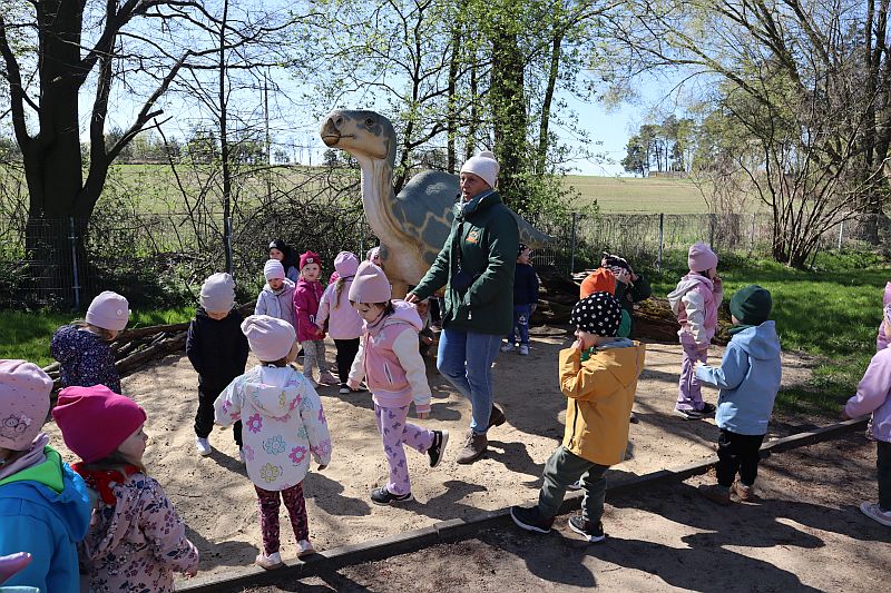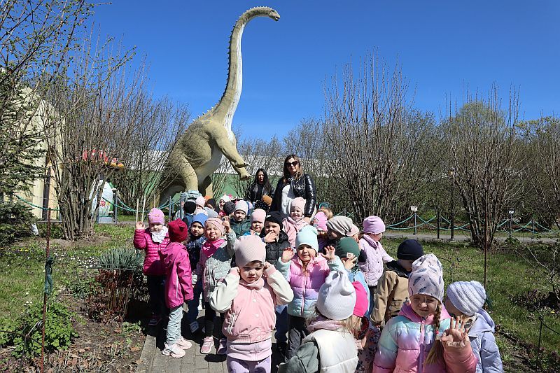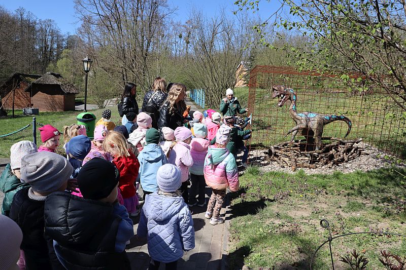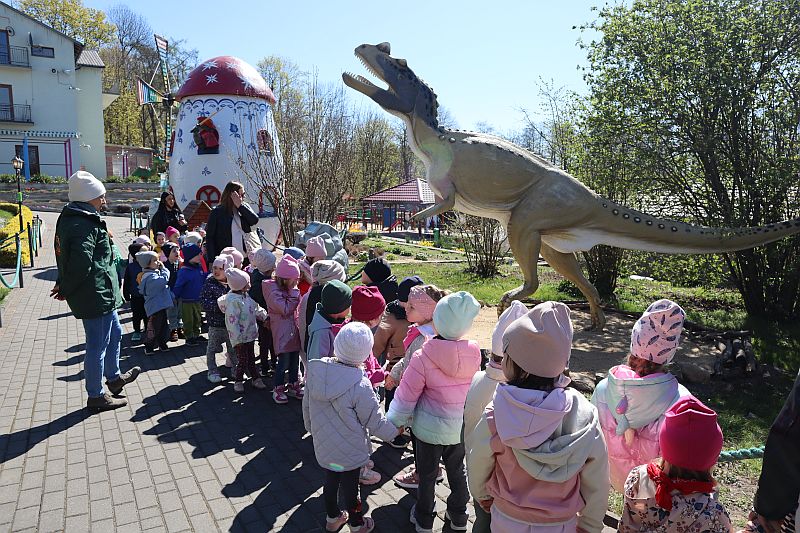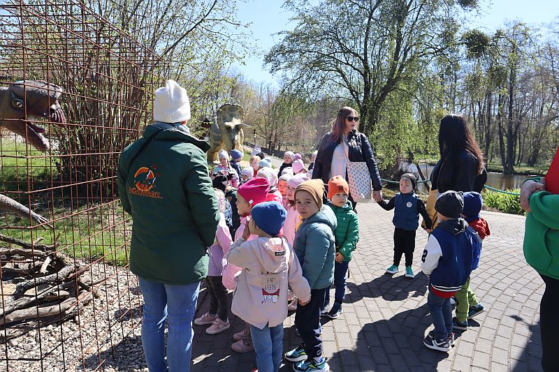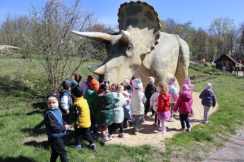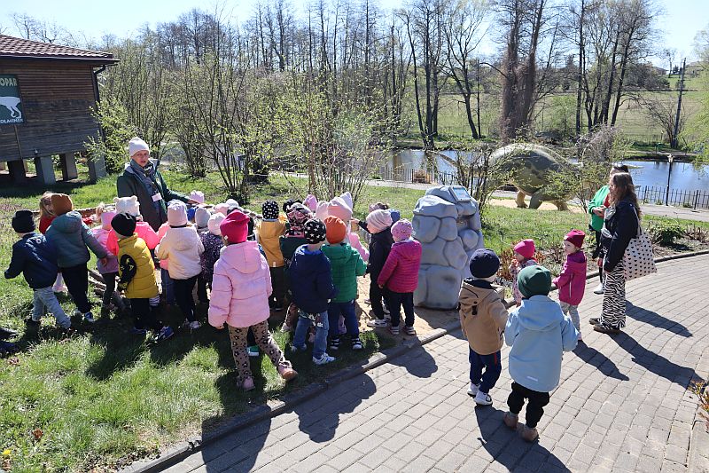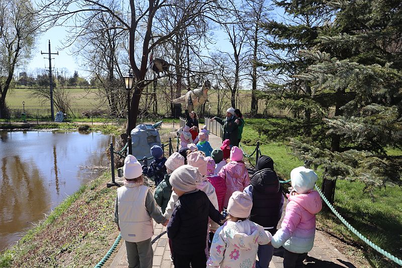 W środę, 22 kwietnia 2026 roku, przedszkolaki z grup Sówki oraz Stokrotki wybrały się na pełną przygód wycieczkę do Dino-Parku w Kołacinku. Już od pierwszych chwil pobytu dzieci z ogromnym zaciekawieniem podziwiały imponujące modele dinozaurów oraz odkrywały ciekawostki dotyczące ich życia.
