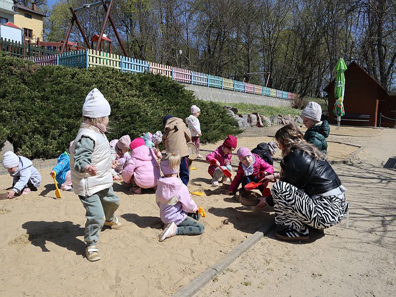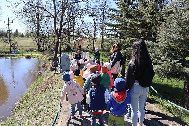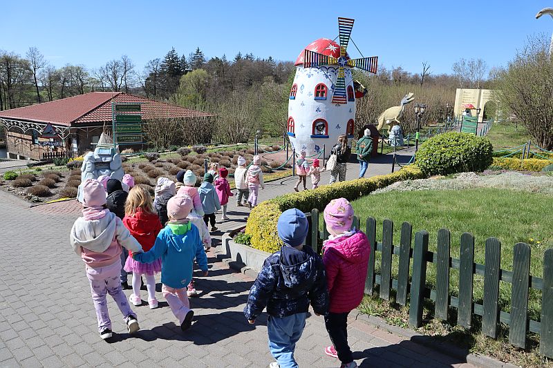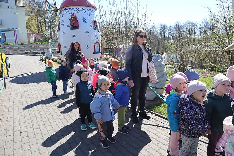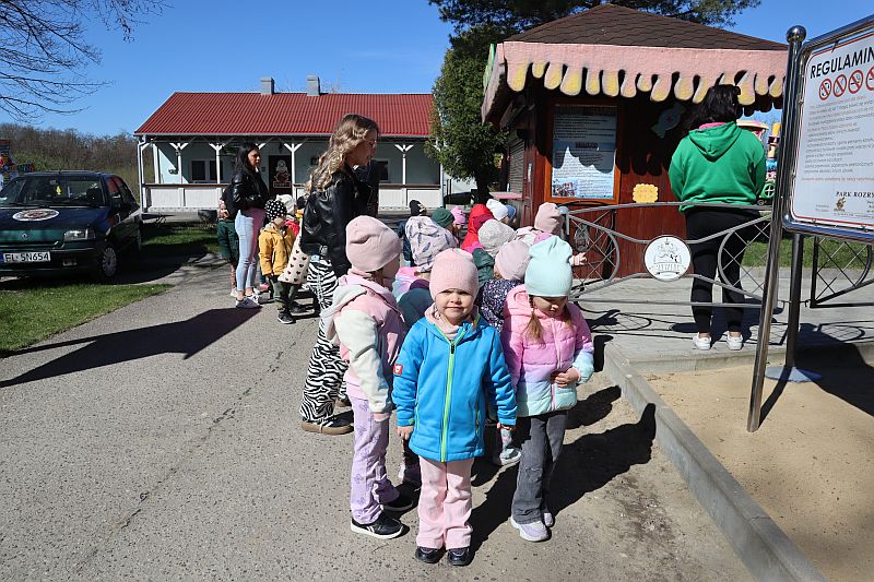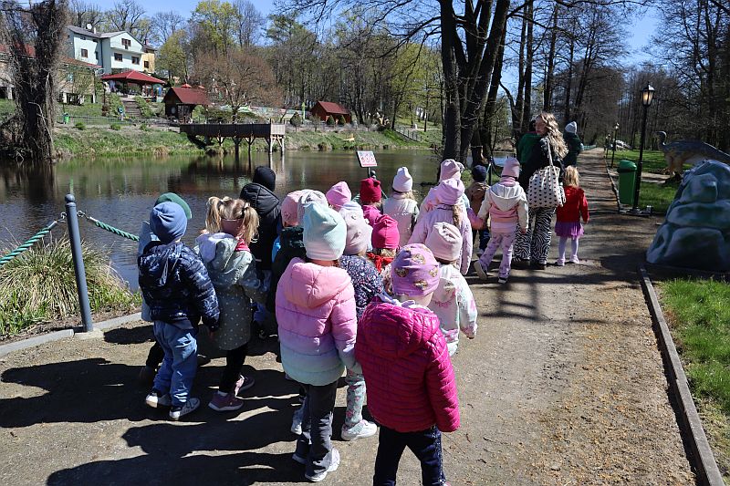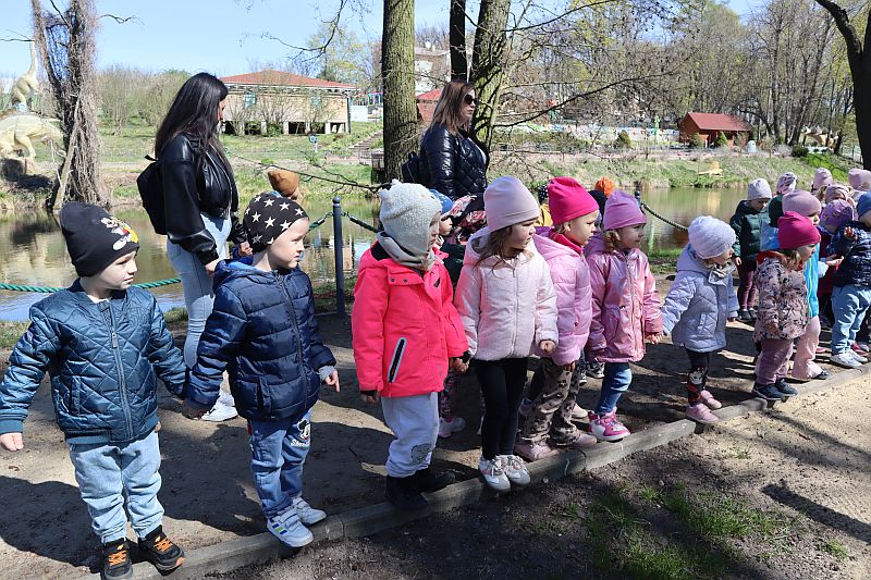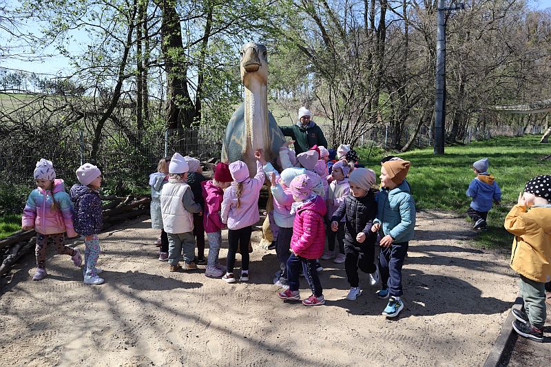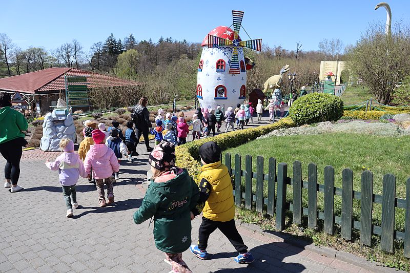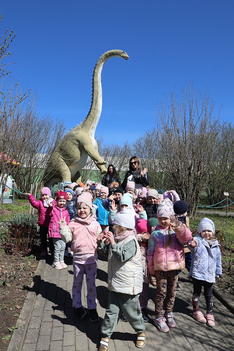 W środę, 22 kwietnia 2026 roku, przedszkolaki z grup Sówki oraz Stokrotki wybrały się na pełną przygód wycieczkę do Dino-Parku w Kołacinku. Już od pierwszych chwil pobytu dzieci z ogromnym zaciekawieniem podziwiały imponujące modele dinozaurów oraz odkrywały ciekawostki dotyczące ich życia.