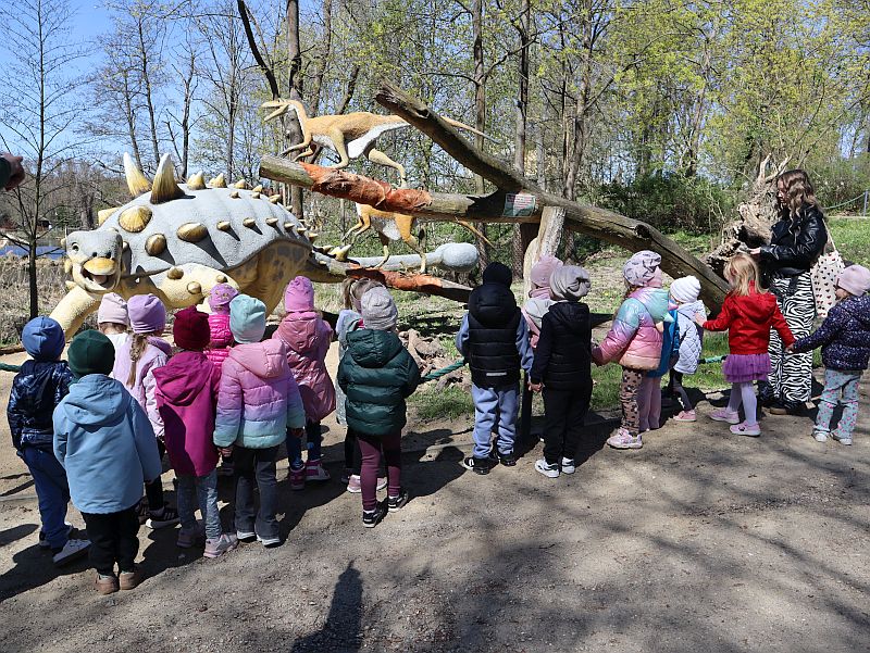 Podczas spaceru leśną ścieżką edukacyjną maluchy mogły przenieść się w prehistoryczny świat, zobaczyć dinozaury w naturalnych rozmiarach i dowiedzieć się, jak wyglądała Ziemia miliony lat temu. Nie zabrakło również czasu na wspólną zabawę, integrację oraz aktywności przygotowane przez przewodników parku.