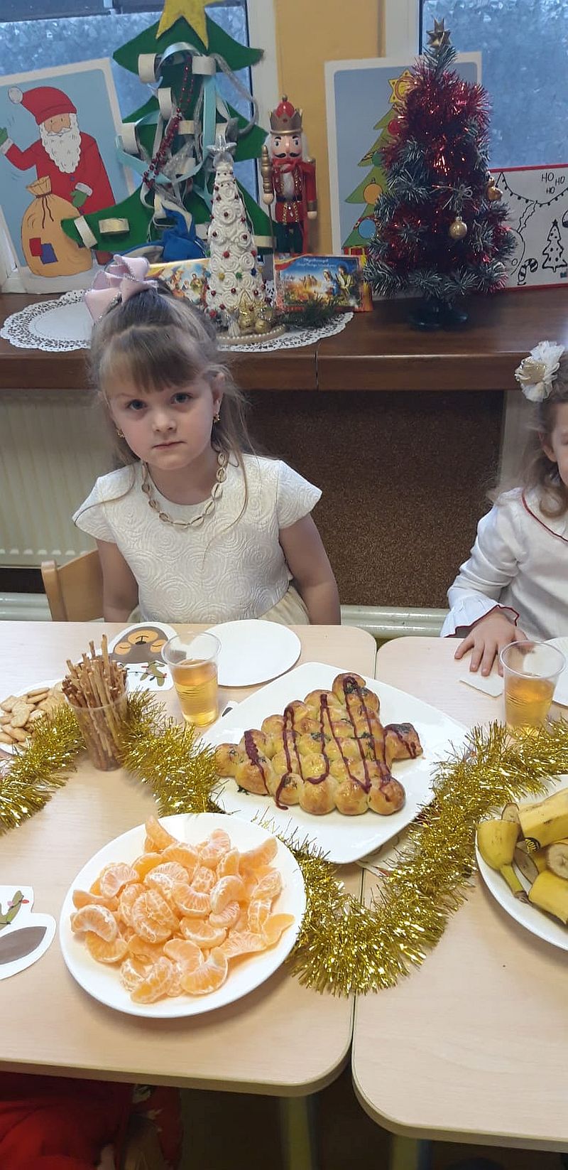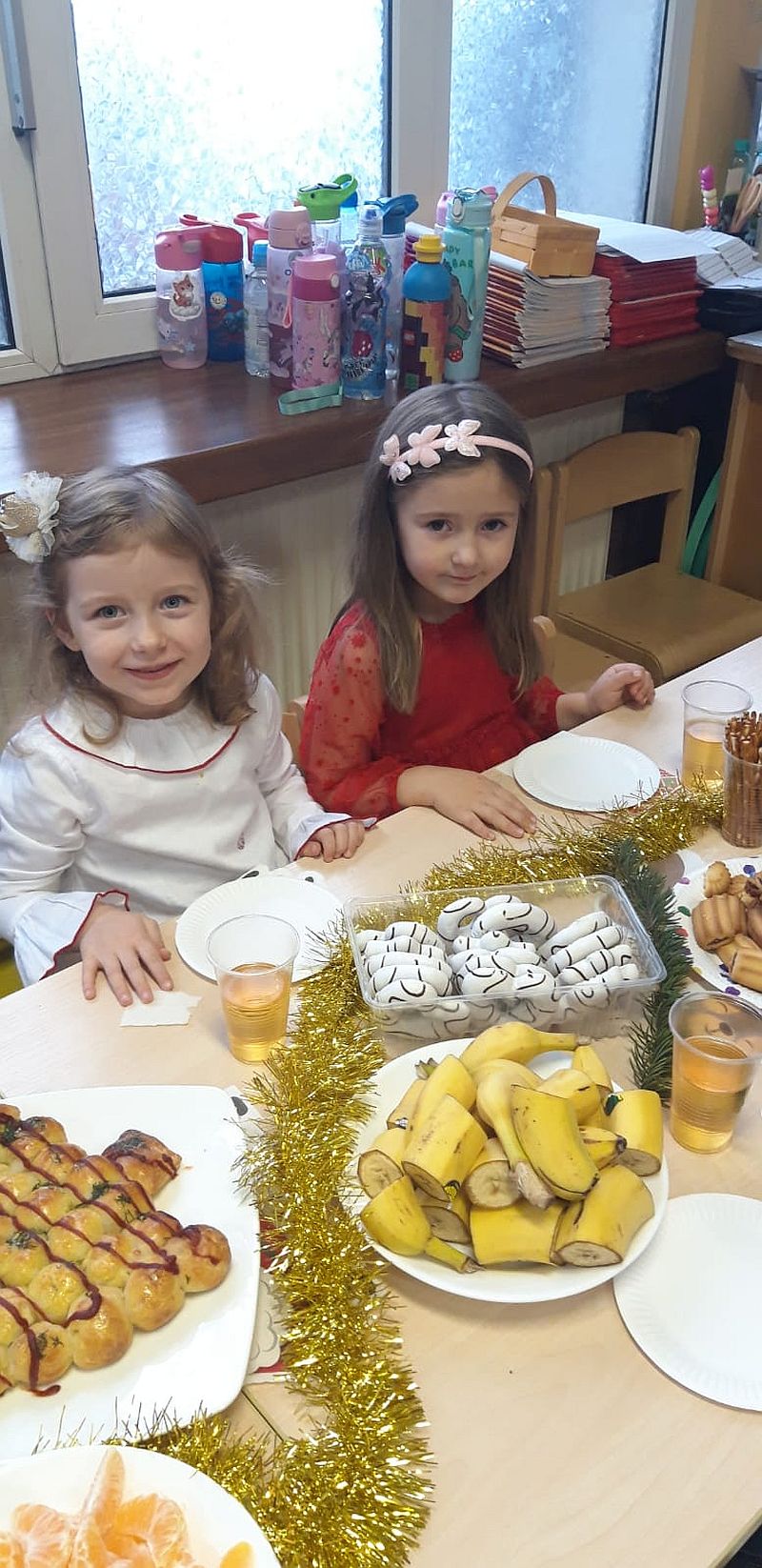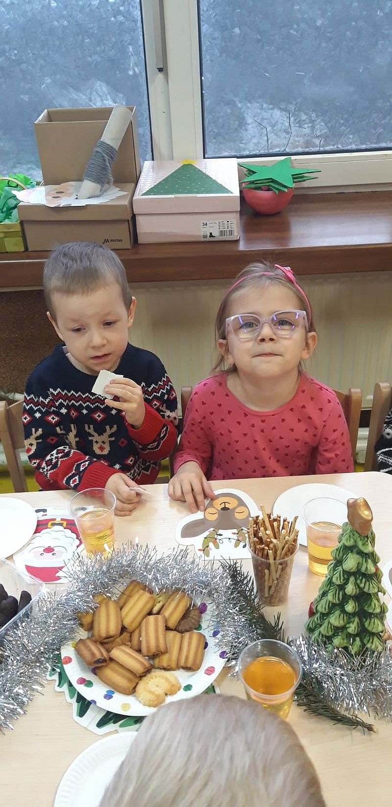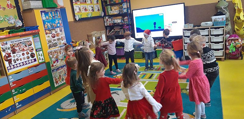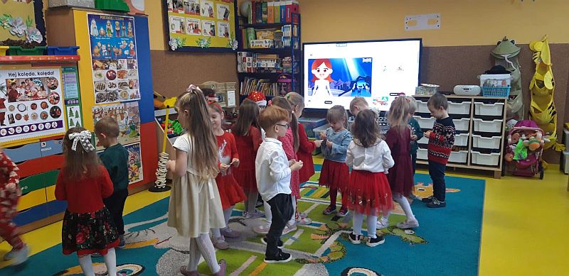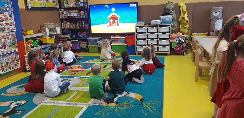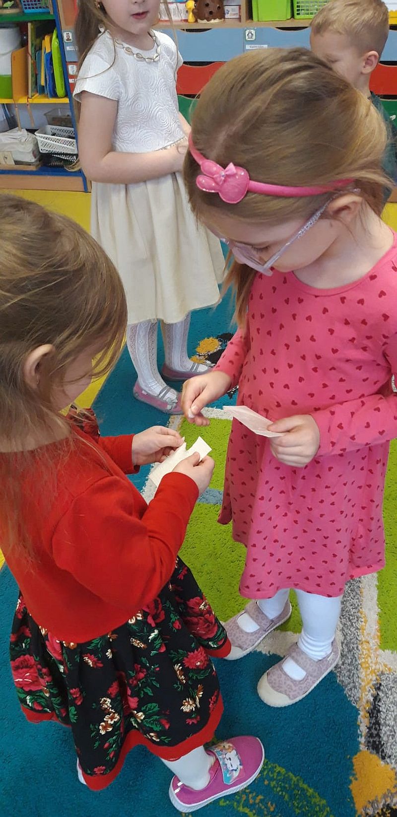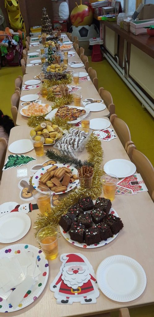 Zaśpiewaliśmy kolędy, złożyliśmy życzenia i podzieliliśmy się opłatkiem. Na zakończenie usiedliśmy do stołu i zajadaliśmy się smakołykami. Podziękowania dla rodziców za przygotowanie poczęstunku.