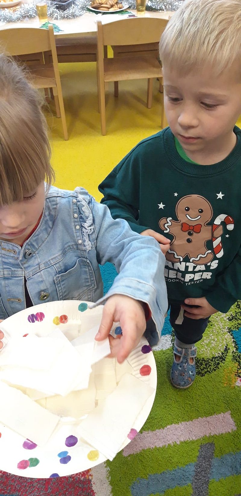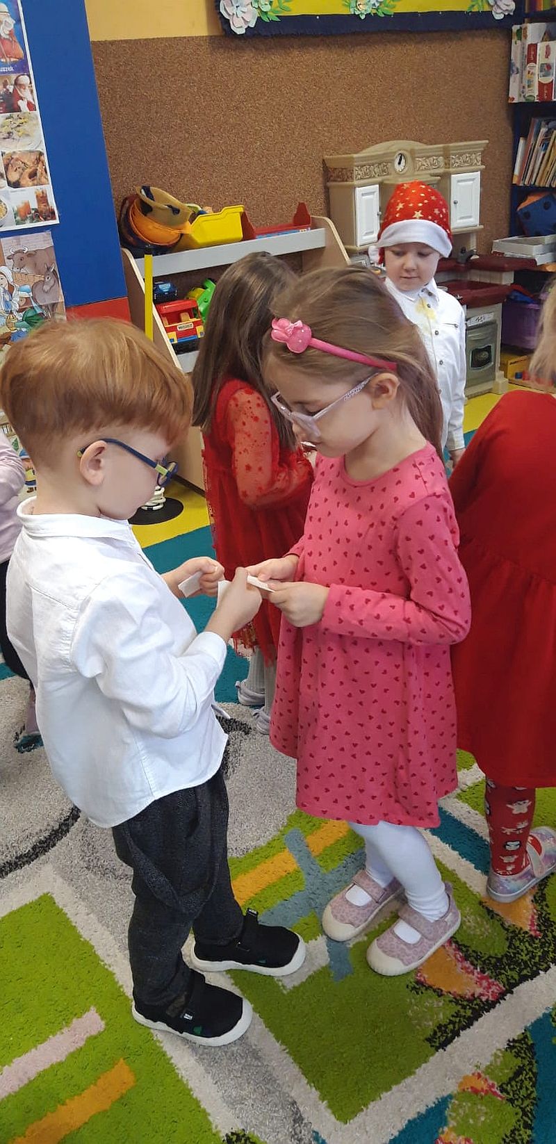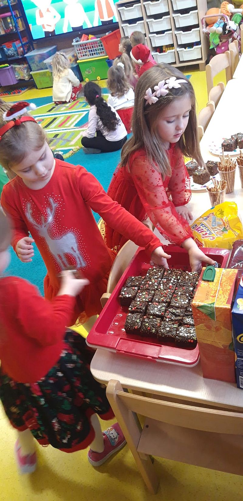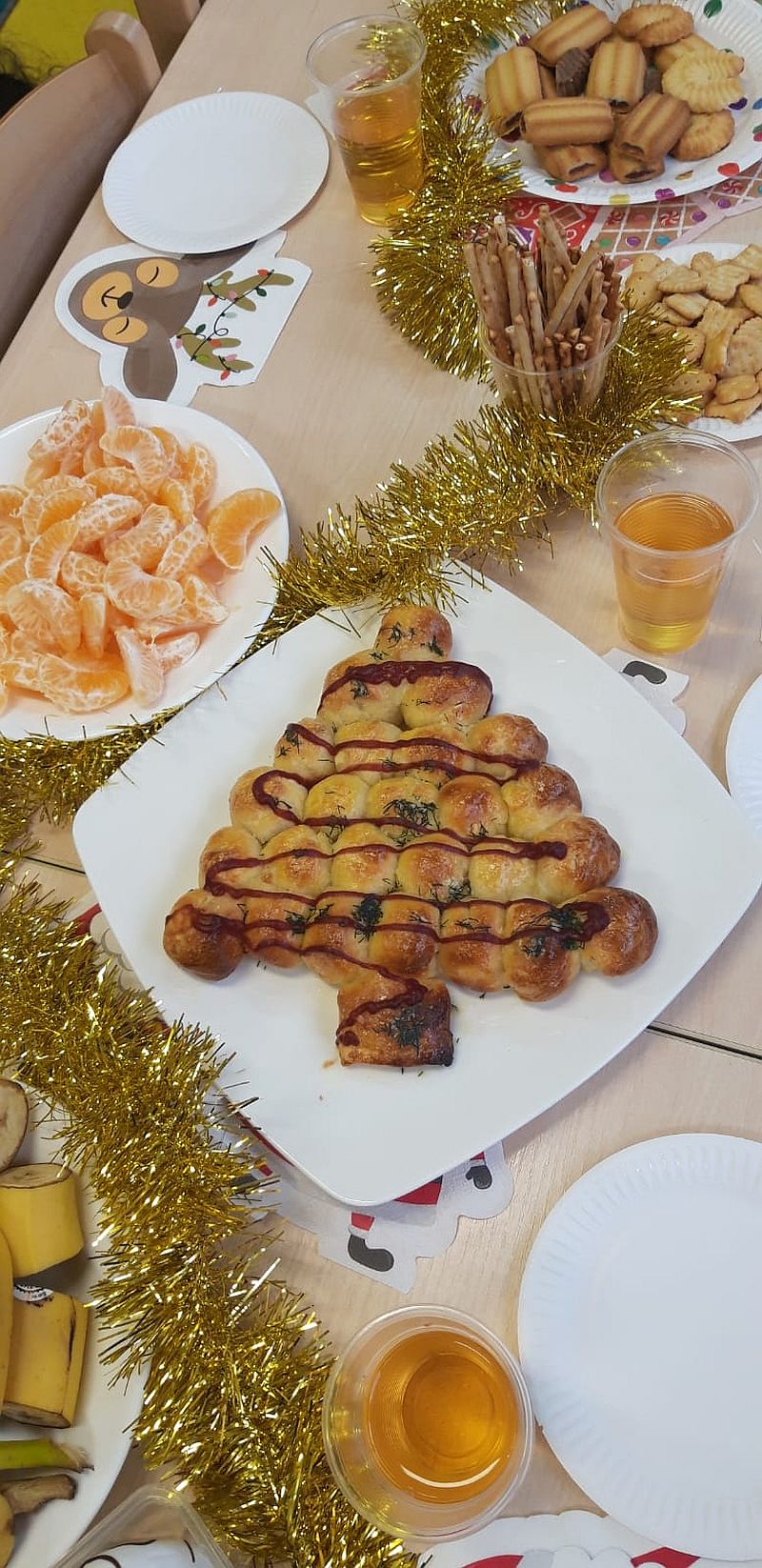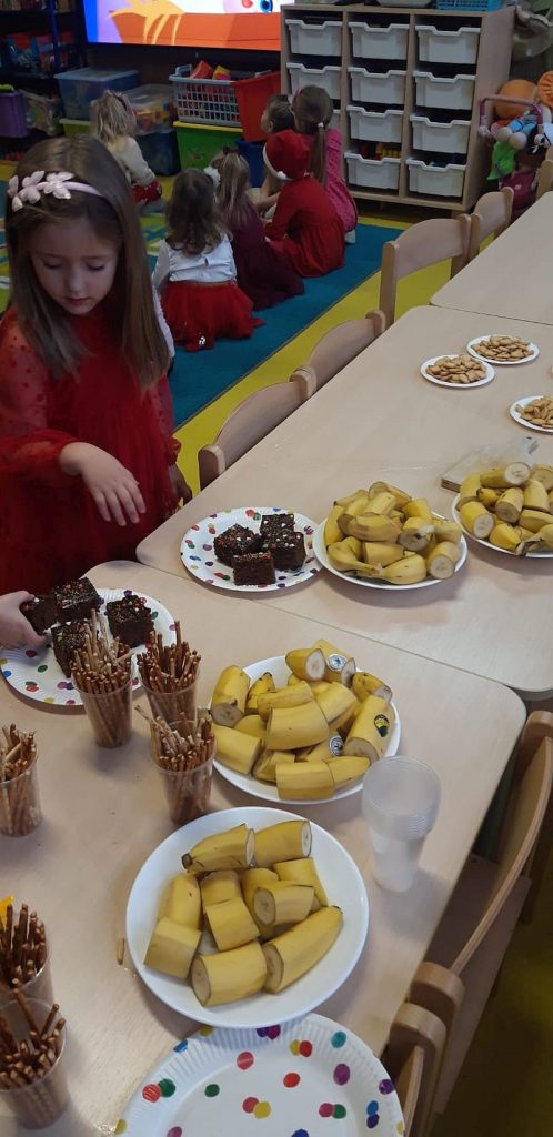 Zaśpiewaliśmy kolędy, złożyliśmy życzenia i podzieliliśmy się opłatkiem. Na zakończenie usiedliśmy do stołu i zajadaliśmy się smakołykami. Podziękowania dla rodziców za przygotowanie poczęstunku.