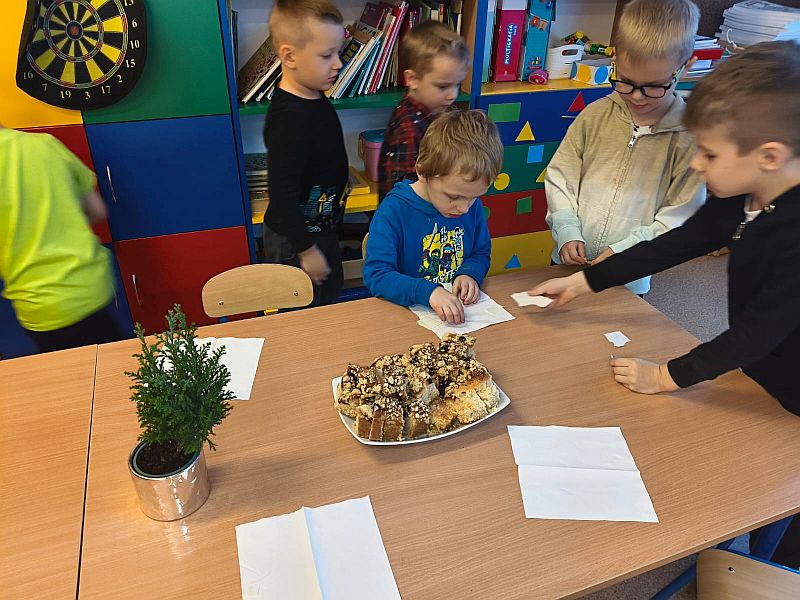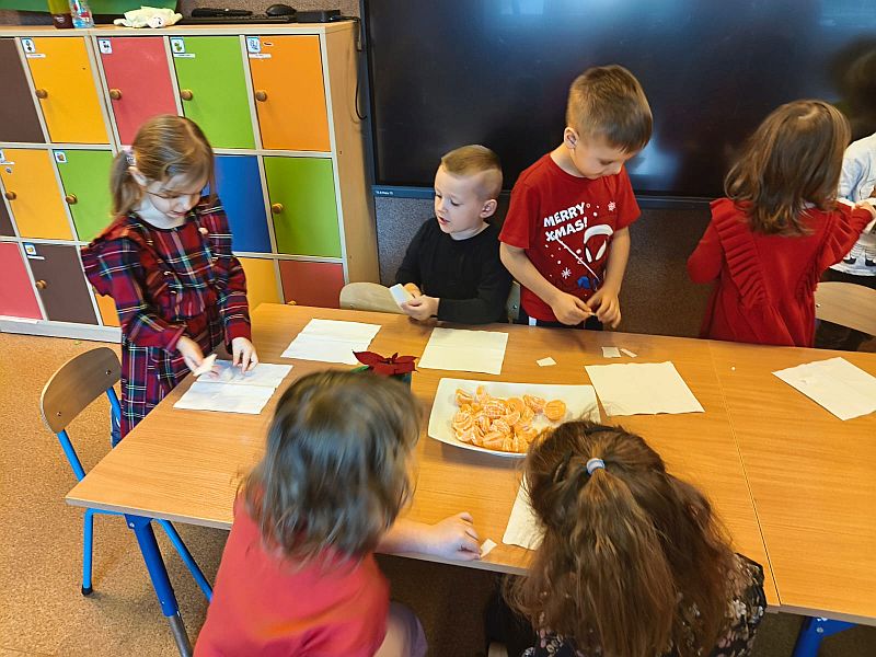 Wigilia Bożego Narodzenia to jeden z najpiękniejszych dni w roku. W naszej „przedszkolnej rodzinie” przeżywamy go równie uroczyście jak i w domu. Każdego roku nawiązujemy do tradycji i zwyczajów świąt poprzez przygotowania ozdób choinkowych, dekoracji pierniczków, śpiewanie kolęd.