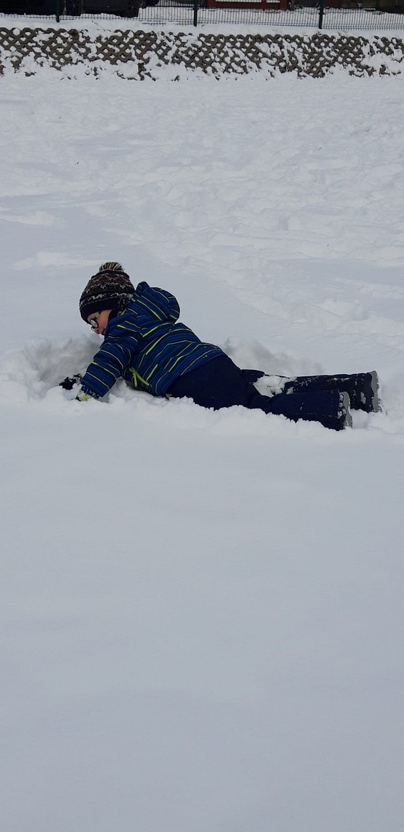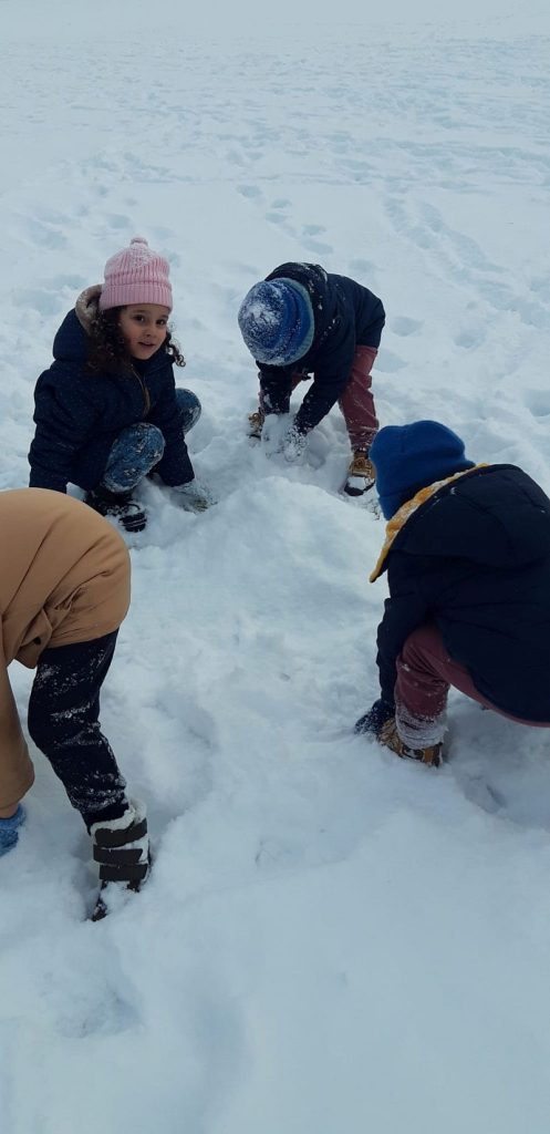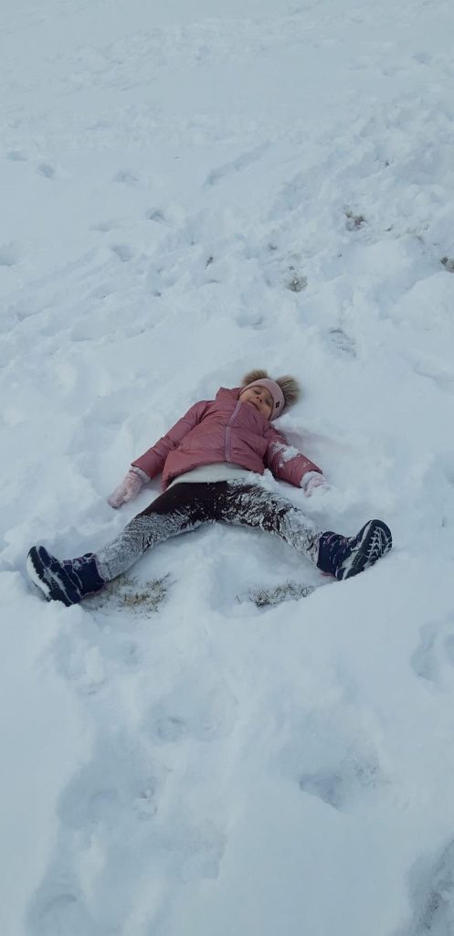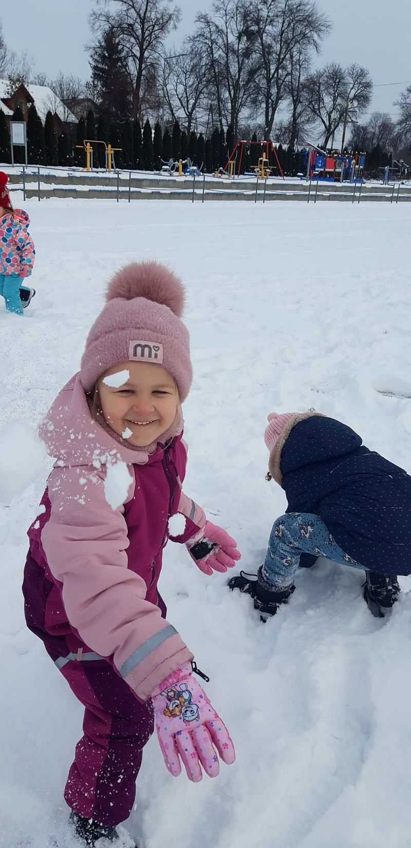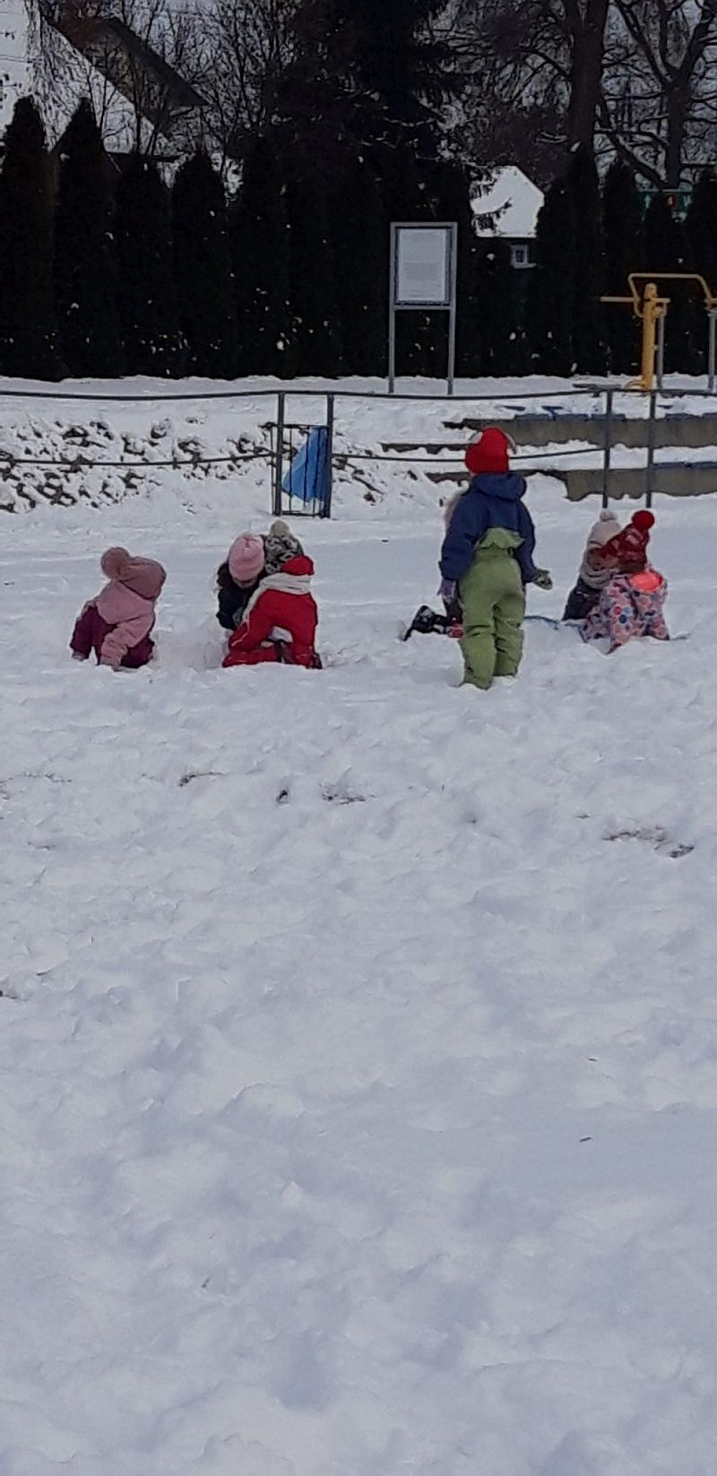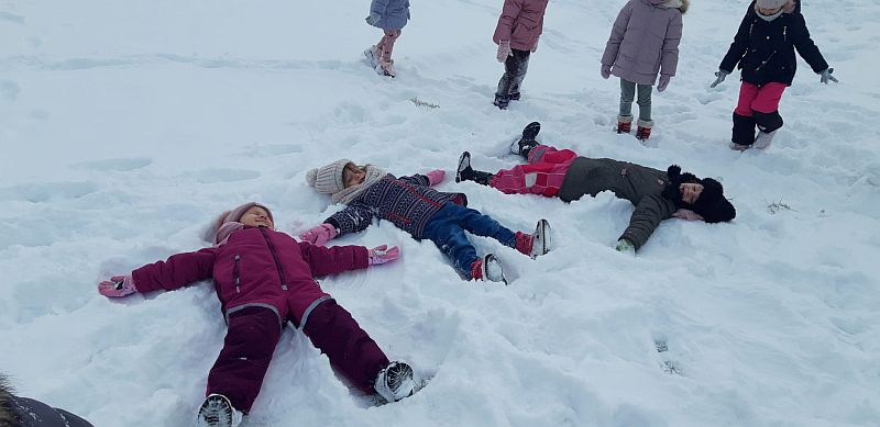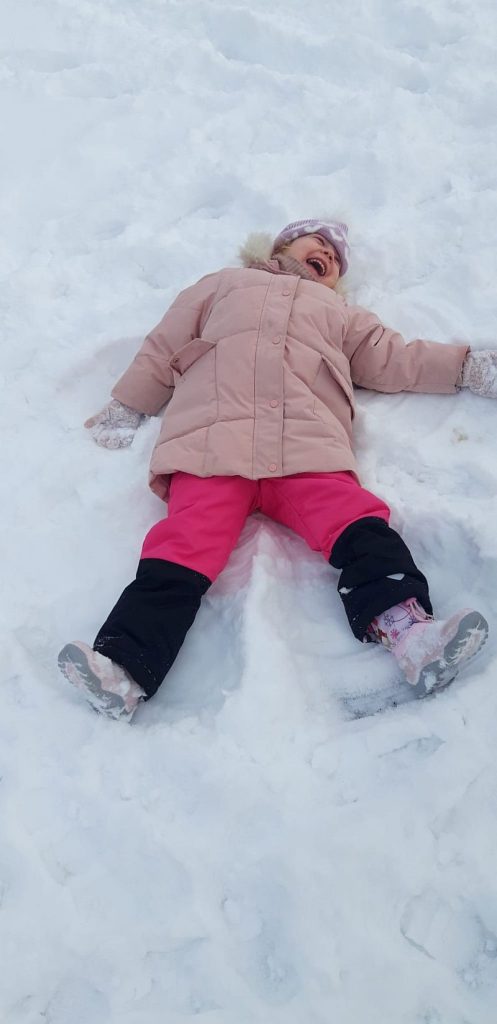 13 stycznia dzieci z grupy „Żabki” skorzystały z zimowej aury pogodowej i bawiły się w śniegu. Zabawy dały im mnóstwo radości od bitwy na śnieżki ,wydeptywanie kształtów ,wykonanie aniołków czy rysowanie palcem po śniegu.