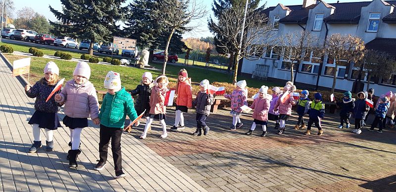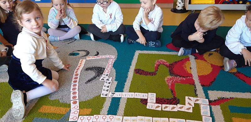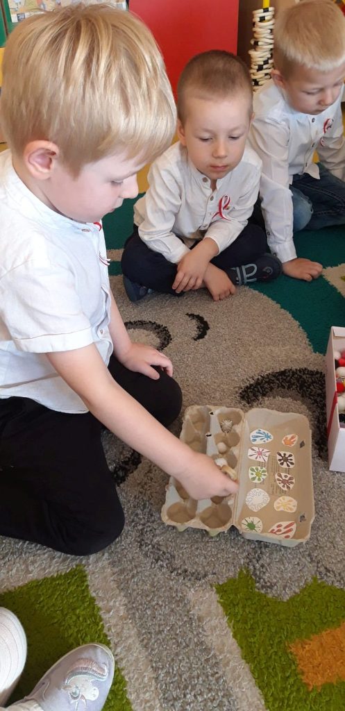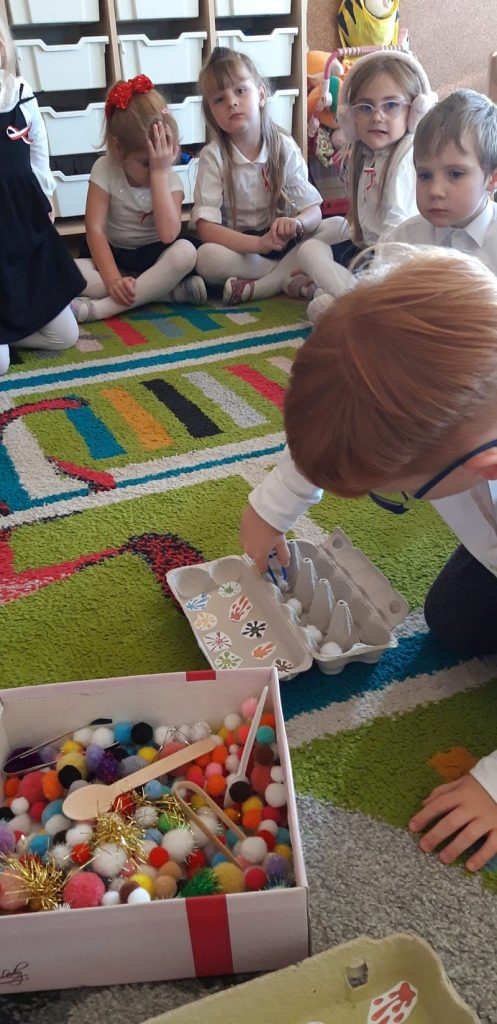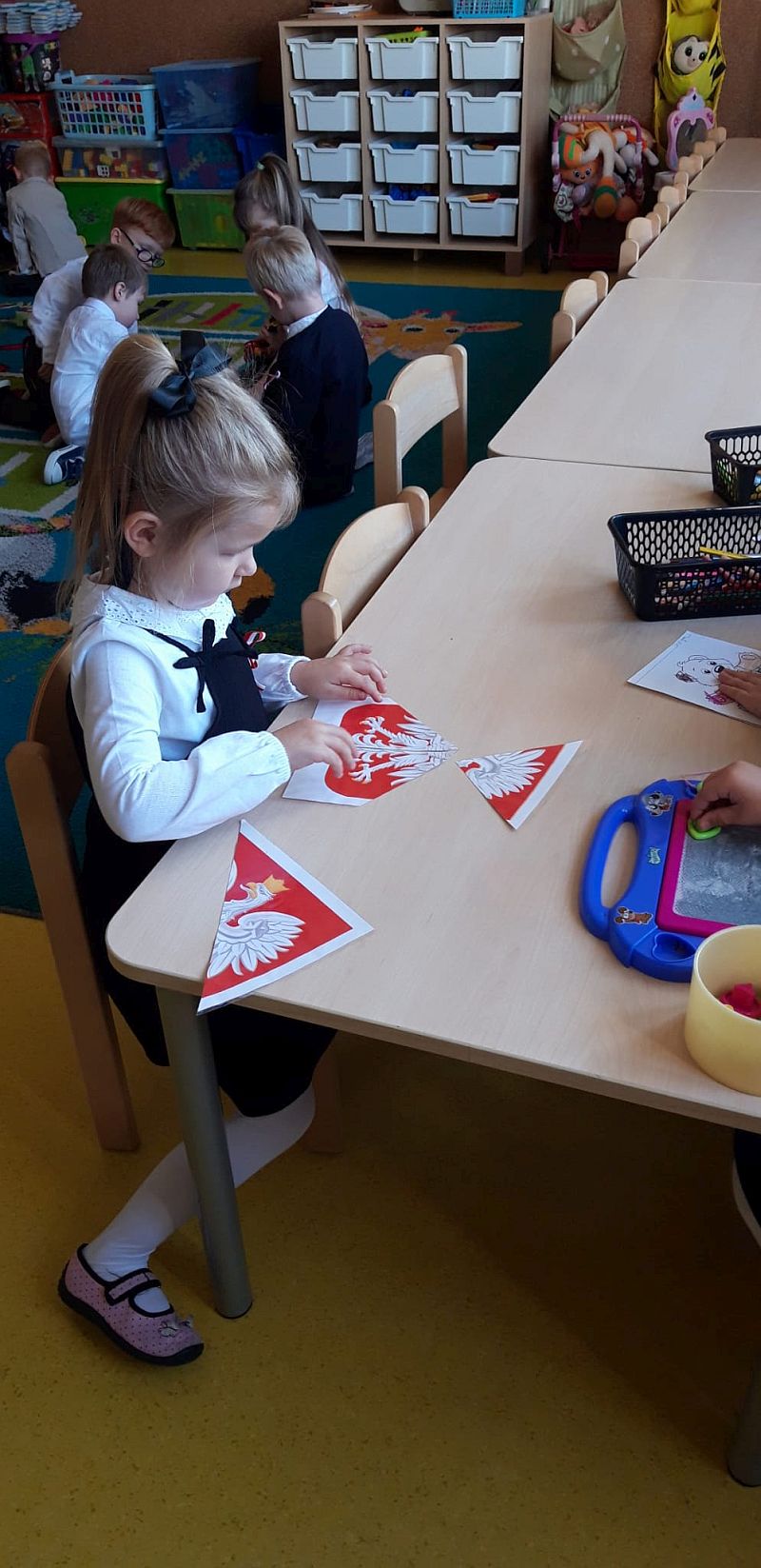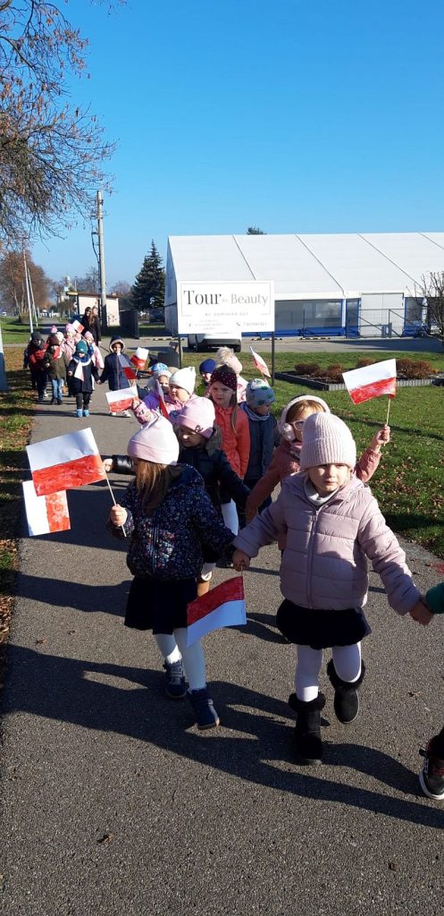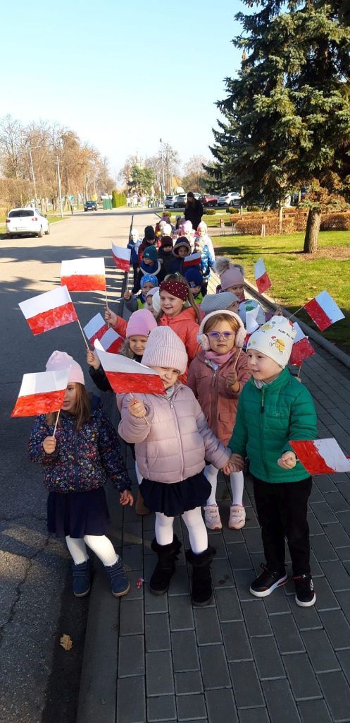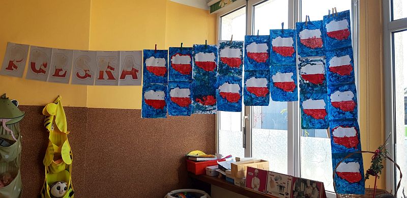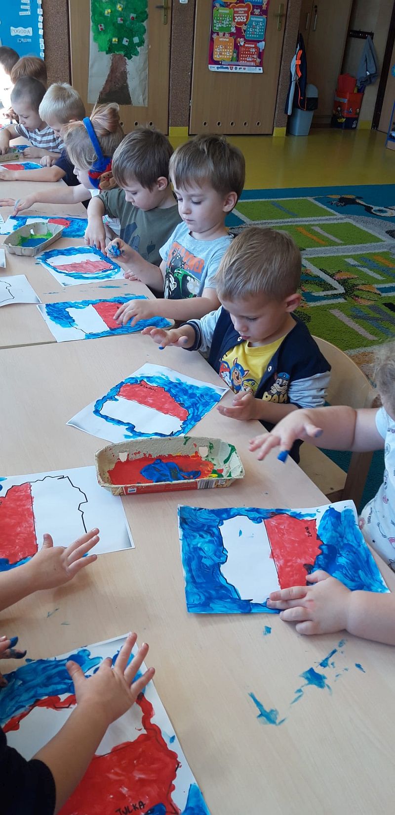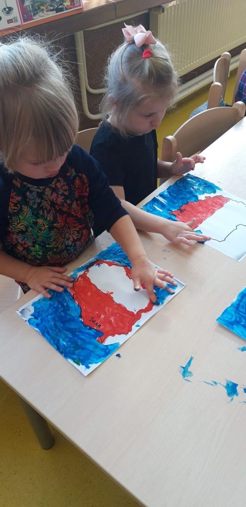 Polska to taka kraina, która się w sercu zaczyna…” to nie tylko zabawa, to nauka, przygoda i okazja do kształtowania miłości do naszej ojczyzny. Dzięki tym zajęciom, dzieci poczuły się dumne z bycia Polakami i odkryli, że Polska to miejsce pełne tajemnic, które warto poznać i szanować.” Na zajęciach śpiewaliśmy hymn Polski „Mazurek Dąbrowskiego” oraz piosenkę patriotyczną „Dzień niepodległości ” z rekwizytami z bibuły w kolorze bieli i czerwieni, układaliśmy domino oraz godło Polski a za pomocą spinaczy przenosiliśmy pompony w odpowiednich kolorach, do opakowań po jajkach, tak aby utworzyły flagę Polski. Wykonaliśmy pracę plastyczną -flagę oraz mapę Polski, rozwiązywaliśmy zagadki typu prawda- fałsz oraz uczestniczyliśmy w apelu z okazji rocznicy odzyskania Niepodległości.